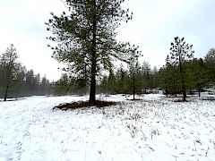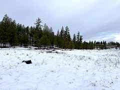 Beautiful land with easy year around access off of a county maintained road. Nice, large flat meadow ringed by Ponderosa Pines with plenty of room to nestle your home. Nice rolling terrain with power on the property.