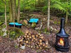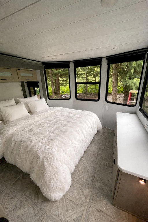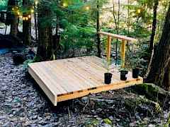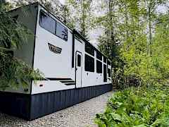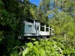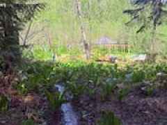 Power installed on this beautifully manicured 10-acre forest retreat! Features include WiFi/satellite, new rocked driveway, prepared site pad, custom cedar privacy gate, and a 1 bed/1 bath 2024 luxury trailer with stainless appliances, marble counters, washer/dryer, 2 lofts, fireplaces, and TVs. Enjoy a year-round creek, ponds, trails, wildlife, hunting, hot tub, firepit, and multiple sitting areas plus a cleared entertaining space. Includes chicken coop, greenhouse with 30 raised beds, orchards, garden areas, 20' custom houseboat on trailer, generator, and snowblower. Adjacent to approx. 6,000 acres of private timberland with potential recreational access. Buyer to verify. Owner occupied. Showings by appointment only with agent. Natural Spring supplies water.