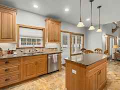 Discover timeless elegance in this exceptional home situated on the fairway of the prestigious 27-hole Chewelah Golf and Country Club. Delight in the chef's dream kitchen featuring solid oak cabinetry, gleaming stainless steel appliances, rich granite countertops, and exquisite Travertine flooring. A sweeping staircase adorned with ornate wrought-iron hand railing adds a touch of grandeur, while recessed lighting and coffered ceilings creates a warm, inviting ambiance throughout. Nestled on a double lot with both an attached garage and a 36x40 detached shop with 12' and 14' doors for insulated RV parking. Enjoy a short commute to 49 Degrees North Ski Resort, downtown Chewelah and Mistequa Casino for entertainment. Your dream home awaits!
