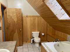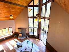 Large home near Kettle Falls and Lake Roosevelt. This 5 bed 3 bath home is tucked amongst the trees w/a prow-front to take in the view and the yard from the large windows and deck. There is a large living-room w/a 2 story vaulted ceiling, wood details, gas stove, a bay sitting-window and easy access kitchen. You will like the main-floor bed, bath and laundry but also enjoy that there is primary suite, bath and adjacent sitting-room on the upper floor w/an office or nursery near. The basement offers 2 more bedrooms, bathroom, family room and storage w/an outside exit. There is FA gas heat, A/C, city water, tile roof, wood siding, easy access and ample parking. There is a large garage/shop w/a wood stove, a back deck, hot tub, spk sys and fenced yard. The home is near the Marina and Park.