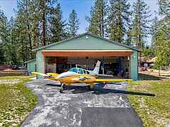 Inland Northwest's premier Airpark at Chewelah Airport Golf & Country Club, set in a scenic mountain valley with easy access to recreation. Fly to Sandpoint or Coeur d'Alene in just 20 minutes, or explore the Pacific Northwest and San Juan Islands. This executive 4,100 sq ft hangar/home has been fully rebuilt and remodeled, located on a prime runway lot with direct access to a 3,500' paved, lighted, all-season runway. Optional $200/year access, no HOA. The level ~50,000 sq ft lot includes $100K+ in upgrades: 200-amp service, water, septic, carport, taxiways, and driveway. Features a 4BR/2BA home in a park-like setting with room to build more. Endless potential!