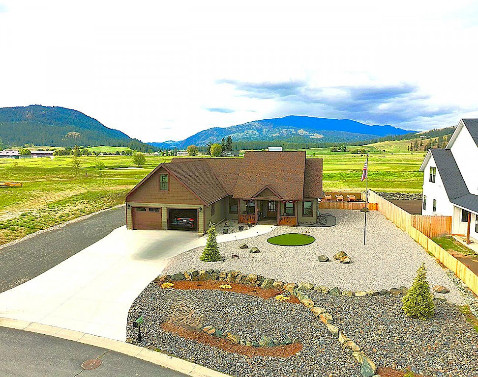 Beautiful newly constructed home situated in Colville's newest neighborhood overlooking the Dominion Meadows Golf Course. Every aspect of this custom 3 bedroom/2bath home is well thought out down to the last detail. Inside you will enjoy rustic Alder cabinetry, quartz countertops, vintage pully pendant lighting, Anderson windows, vaulted ceilings and high end kitchen appliances. This home is designed for low to no maintenance with the hardboard siding, beautifully landscaped (no maintenance) yard, concrete patio/porches, paved drive and efficient heating/cooling systems. Enjoy the enclosed & screened in Arizona room, enclosed backyard for privacy with a view of the course and surrounding mountains. Bonus room for extra guests above garage, RV parking and so much more!
