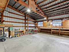 Welcome home to your private 6.5-acre retreat! This sprawling 3,000+ sq. ft. haven features 5 oversized bedrooms and 2 beautifullyappointed baths. Vaulted ceilings crown the open-concept living, formal dining, and wraparound kitchen complete with double ovens,cooktop, bar seating, and a premium water filtration system. Gather around the 5-year-old pellet stove as natural light pours in thru every window. The primary suite addition impresses with a huge walk-in closet, 4-piece spa bath, and double doors leading to a serene brick patio. Enjoy main-floor laundry, abundant storage, and a mudroom leading to fenced gardens and pastures ready for pets or livestock. A 3-stall barn, oversized 3-car garage with carport, and 72x32 heated shop with roughed-in bath make this a dream for hobbyists.