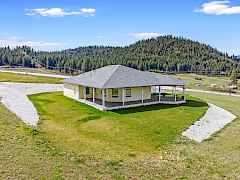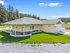 Take in beautiful views of the valley from this 3 bed, 2 bath home situated on 2.24 acres. The open floor plan is filled with natural light and features luxury vinyl flooring and crown molding throughout. The kitchen offers custom cabinetry, stainless steel appliances, a walk in pantry, and a large island with an additional breakfast bar. The spacious primary suite includes a custom built in closet, tiled walk in shower, and a spa style tub. Outdoor living is a highlight with a wrap around deck perfect for relaxing or entertaining. An attached 2 car garage adds convenience and storage. Located close to local amenities including 49 Degrees North Ski Hill, Chewelah Golf & Country Club, Mistequa Casino, and nearby lakes, this property offers both comfort and accessibility.