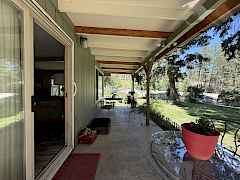 Absolutely neat as a pin! Both the house and the yard are immaculate. This solid frame-built 1 1/2 story home has a large balcony off the bedroom overlooking the well-tended flower beds. The main floor features a large living room, family room, primary bedroom and laundry. The garden and yard are shaded by mature trees. An attached two-car carport offers convenient access no matter the weather.