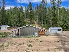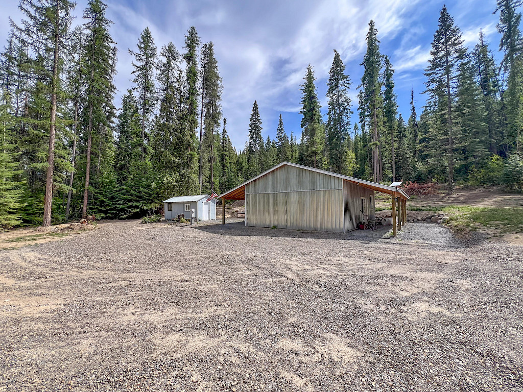 The perfect Get-a-way! Situated on just over 5 acres, this property has seclusion, easy access, timber, and a extremely well built shop/house with multiple outbuildings! Inside the shop, you have a large open floorplan for a living area, with swinging doors in place for toys. A partial kitchen/bar area is in place and a nice Quadra Fire stove to keep you warm! Towards the back of the shop you will find a nice sized bedroom, full bathroom, and utility/laundry room. Radiant Floor heating is in place, just needs hooked up to a water heater/boiler! Outside, you have a nicely landscaped area that is ready for your final touches. Plenty of area to build your dream home, or finish out the current quarters! Well and power have been redone and certified, and numerous loads of new gravel! Surveyed!