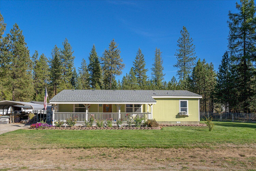 Enjoy peaceful country living just north of Spokane in this updated home near Loon Lake! Set on just under an acre of level, treed land with paved road access, this property offers space, comfort, and convenience. Features include a covered front porch, back deck, fenced backyard, and a wonderful chicken coop. There's plenty of room to park your RV or build a shop, plus a two-car carport, 10x24 office building, and 8x16 storage shed. Inside, you'll find all new flooring and paint, a new hot water heater, and a new furnace. The roof was replaced just 4 years ago—move-in ready and easy to maintain. A great opportunity to enjoy quiet country living close to town!/ Gesa is offer 4.99% -5.76% interest rate