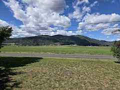 Mountain views from this 3 bedroom, 2.5 bath one level rancher on the edge of town. with a brand new roof. Large primary suite with walk-in closet, soaker tub and shower. Wood floors, gas forced air, central AC, fenced backyard & attached 2-car attached garage. Easy living.
