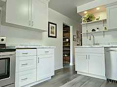 Beautifully renovated home with an extensively updated electrical system. New updates include electrical panel, water heater, energy efficient vinyl windows, flooring, cabinetry, HVAC system, electric wall heaters, & sewer line. Take in sweeping views of the city & historic flour mill from the spacious covered deck that is perfect for relaxing or entertaining in any season. The basement offers flexible space with a large recreation room, full bath, mechanical room, & an area that could easily be useful as a 5th bedroom. On an oversized lot & a half, this property offers plenty of space & extra privacy with no rear alley. Cold tolerant sod & mature fruit trees. Attached garage completes this turnkey home with major updates completed!