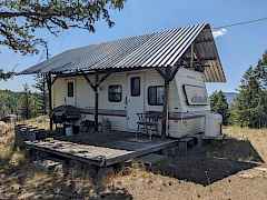 This furnished dry cabin will wow you with panorama views and offers a perfect setting for outdoor adventures. Whether you're looking for a weekend getaway, a seasonal retreat, or an off-grid living experience this property is ready for you. Perfect for group gatherings, the property boasts a secondary camping site with trailer and camper shell included. Simply unpack your bags and start making memories. Enjoy hiking, hunting or simply relaxing, with endless recreational opportunities right at your fingertips. Unwind on the porch in the evenings, soaking in the beauty of your surroundings. Abundant wildlife frequent the area making every day a new chance to connect with nature. All tools and building materials stay with the property.