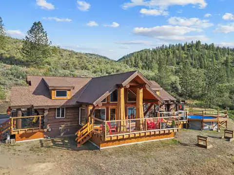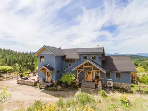 Find your retreat! 4 Bdr, 4 Bth lodge home, where luxury meets rustic charm. Nestled on 10 acres on the Kettle River, the home is surrounded by natural beauty. Inside, you'll be greeted by a grand, open floor plan, the focal point of the great room is a magnificent two story fireplace. Three en-suite bedrooms add comfort and privacy. The expansive gourmet kitchen is a chef's dream, with commercial-grade appliances and ample counter space for culinary creations. Custom hardwood floors lend an air of elegance and warmth. Property Includes an oversized 2-car attached garage, and 4-car detached garage/shop. Outside, find a mix of manicured lawn, and trees. Enjoy Mature fruit trees/garden, fishing and swimming right out your back door. Owner Financing 600,000 down, 5%, 15yrs